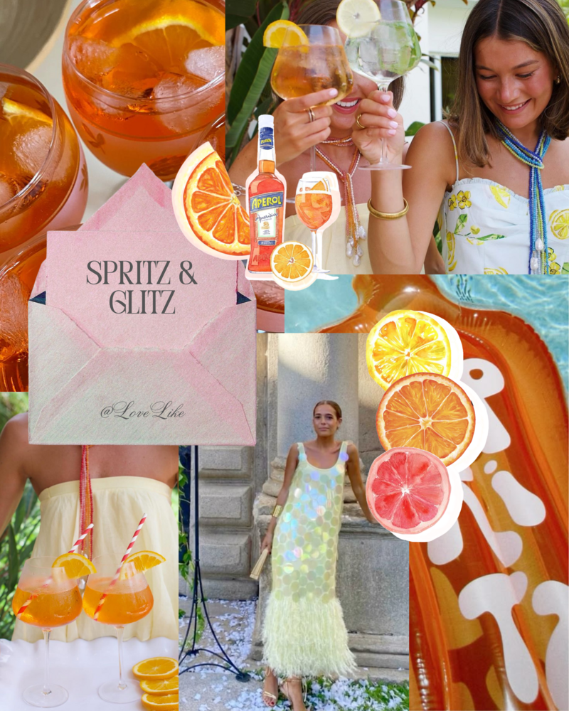 A vibrant weekend full of spritz, sparkling, pours, and glitz. Inspired by the iconic Aperol Spritz of a sun-ripened citrus. A party as fun as she is!